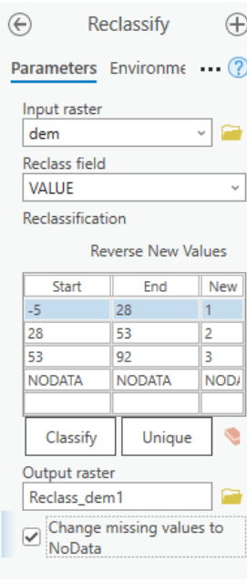 - Use the Reclassify tool in ArcGIS Pro to assign suitability values: