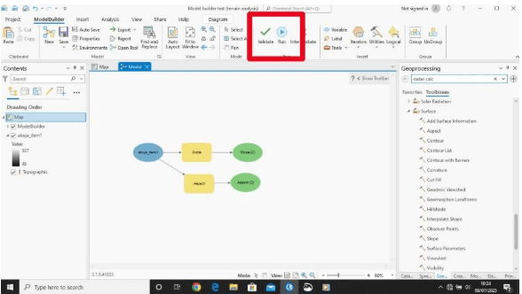 Using Model Builder, you can chain these tools together. When new DEM data comes in, simply click Run — the entire workflow updates automatically.