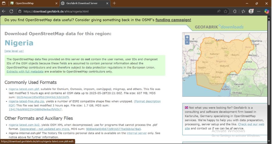 - Download the Nigeria extract (usually a .osm.pbf file).